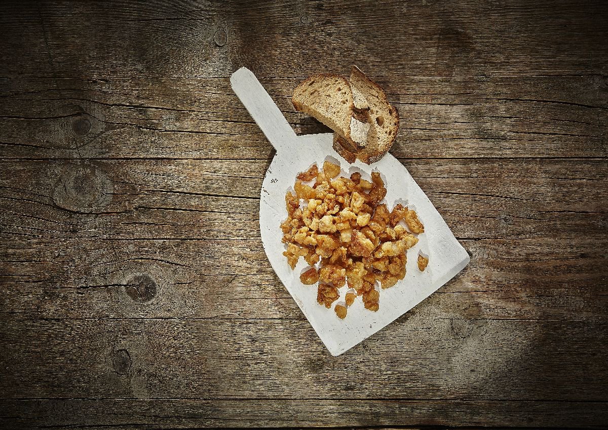 Naše druhá pochutina vonící vepřovým masem. Vzniká škvařením vybraných menších kousíčků sádla, rozplývajících se přímo na jazyku. Podlehněte této drobnější křupavé variantě s čerstvým chlebem a solí. Vaše chuťové pohárky budou dokonale podmaněny.