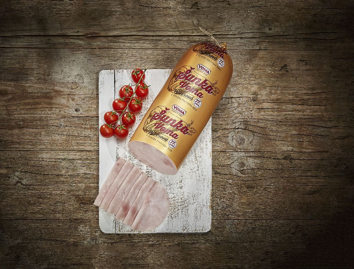 Chuť a vůně masa v každém plátku šunky? Šunka Voma hrdě reprezentuje kvalitní uzeniny této značky a vyniká novým technologickým postupem i vysokým podílem vepřového masa. Je velmi jemná a zároveň výrazná. Požitek z její konzumace zaručuje, že nezůstanete u jediného plátku.